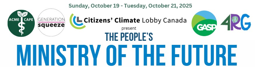 From October 19–21, 2025, Citizens’ Climate Lobby Canada and partners will host The People’s Ministry of the Future, a conference inspired by Kim Stanley Robinson’s 2020 climate novel, The Ministry for the Future, and grounded in the reality that climate solutions already exist. The promise is that by acting on them, Canadians can build a more affordable and prosperous future.