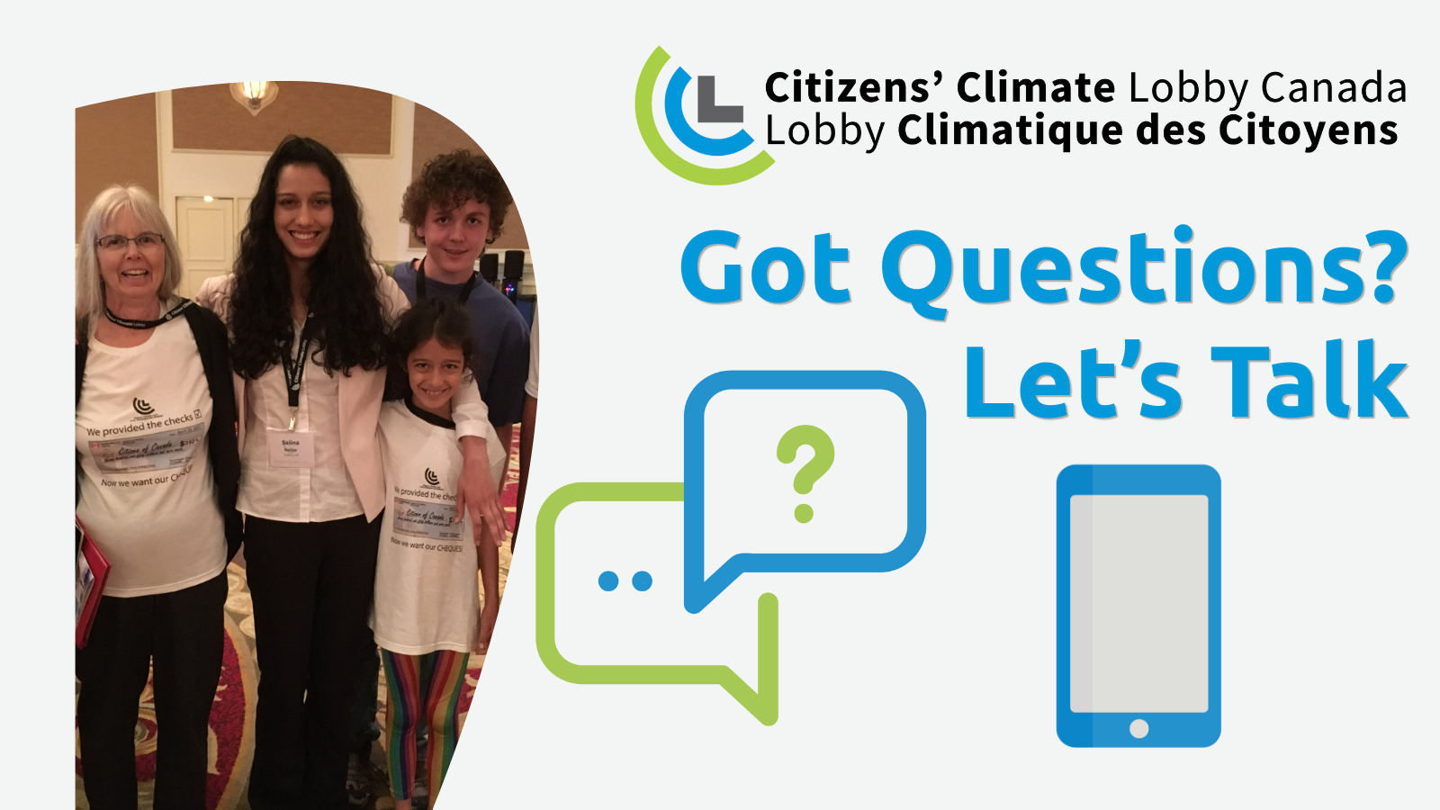 Every Wednesday night we have office hours where you can ask us anything. Register here or click on the image. You can also email canada@citizensclimatelobby.org. In your email tell us a little bit about you including the name of your Member of Parliament.