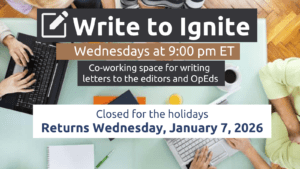 As a result, we focus on writing letters to the editor and host an open work session every Wednesday night.