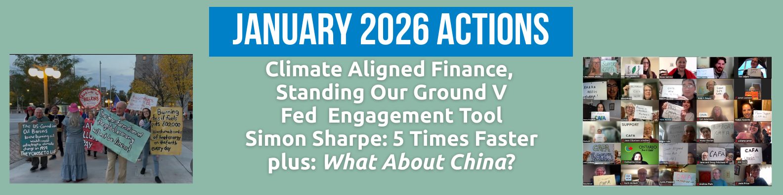 Here are the January Actions and Laser Talks. Our Senate Action Team has outlined plans for building political will for climate aligned finance. We have our fifth annual planning session on Sunday, February 1. The feds are seeking feedback on the industrial carbon pricing policy. Our monthly educational call will show us why and how the economy can transform five times faster. Read about how China is outperforming Canada on Clean Energy and Carbon Pricing.