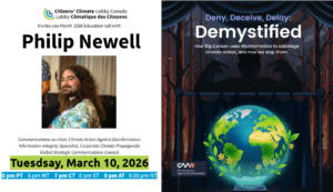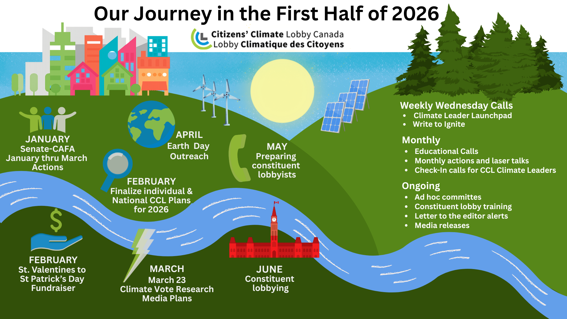 We want a liveable world, so we want to see bold action to fight climate change. Since 2010, we have been meeting monthly. We have empowered thousands of volunteers to engage their elected leaders in conversation and advocate for the legislation and policies we need to make that liveable world a reality. Read about our achievements in 2024 in our Q1 Report, Q2 Report, Q3 Report, Preliminary Q4 Report and Q4 Year end report. Check out our achievements in 2025 in our Q1 and Q2 Reports. We were so busy in the fall of 2025 that we did not produce a Q3. Look for our 2025 report in mid-to-late January. . Weekly calls